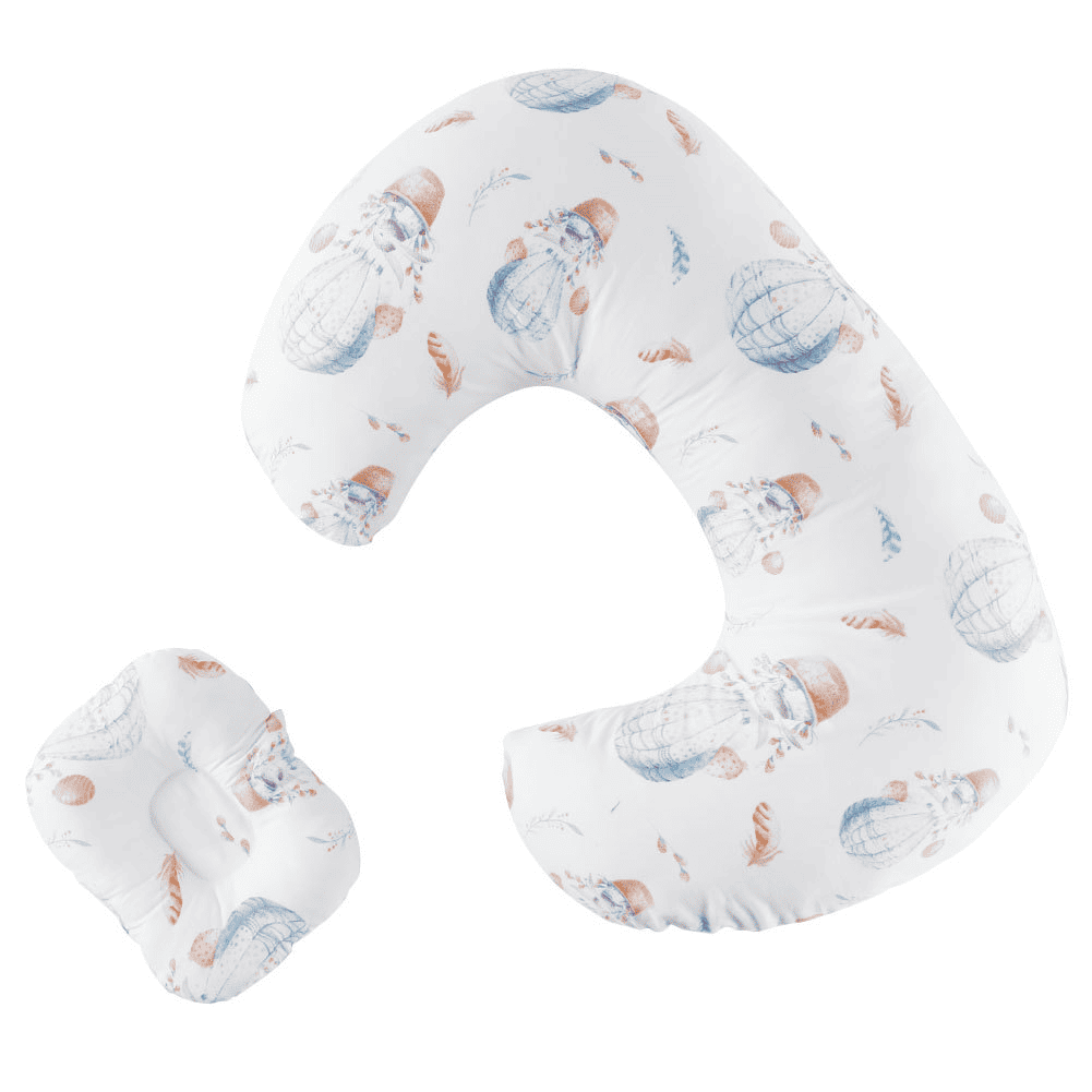 Le Coussin Allaitement 56x36cm Montgolfière Blanc est un ensemble avec un grand coussin en U et un petit coussin de soutien.